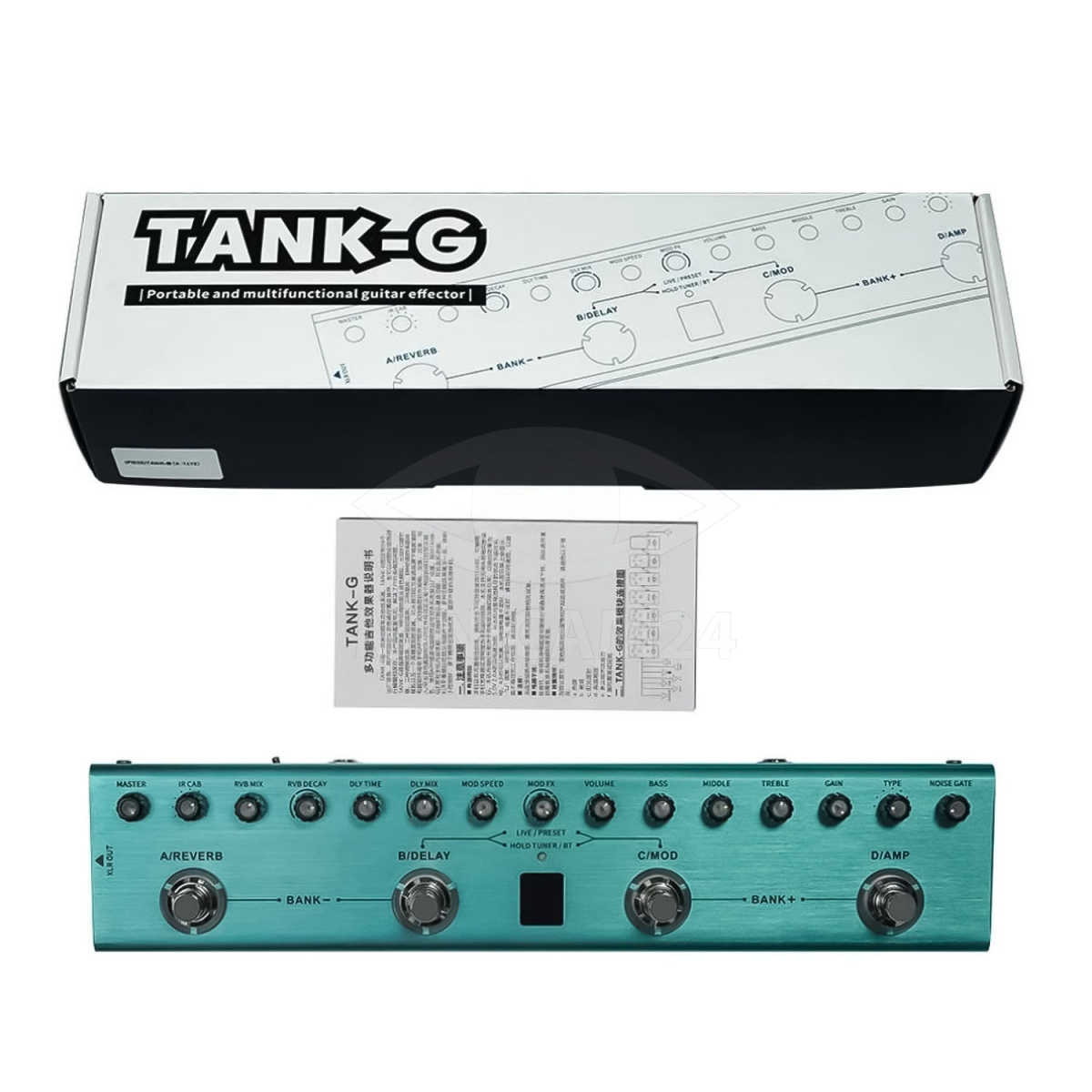 TANK-G — портативный многофункциональный гитарный эффектор, имеет встроенный аккумулятор, 36 встроенных редактируемых пресетов: пользователи могут настроить цепочку эффектов и сохранить ее.